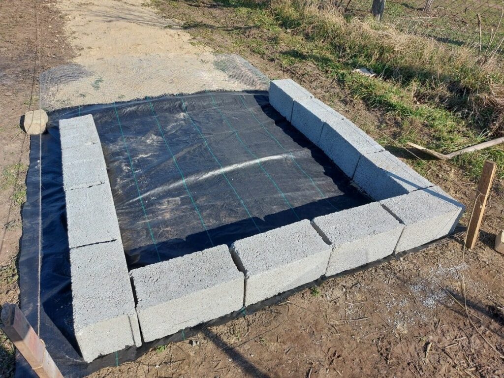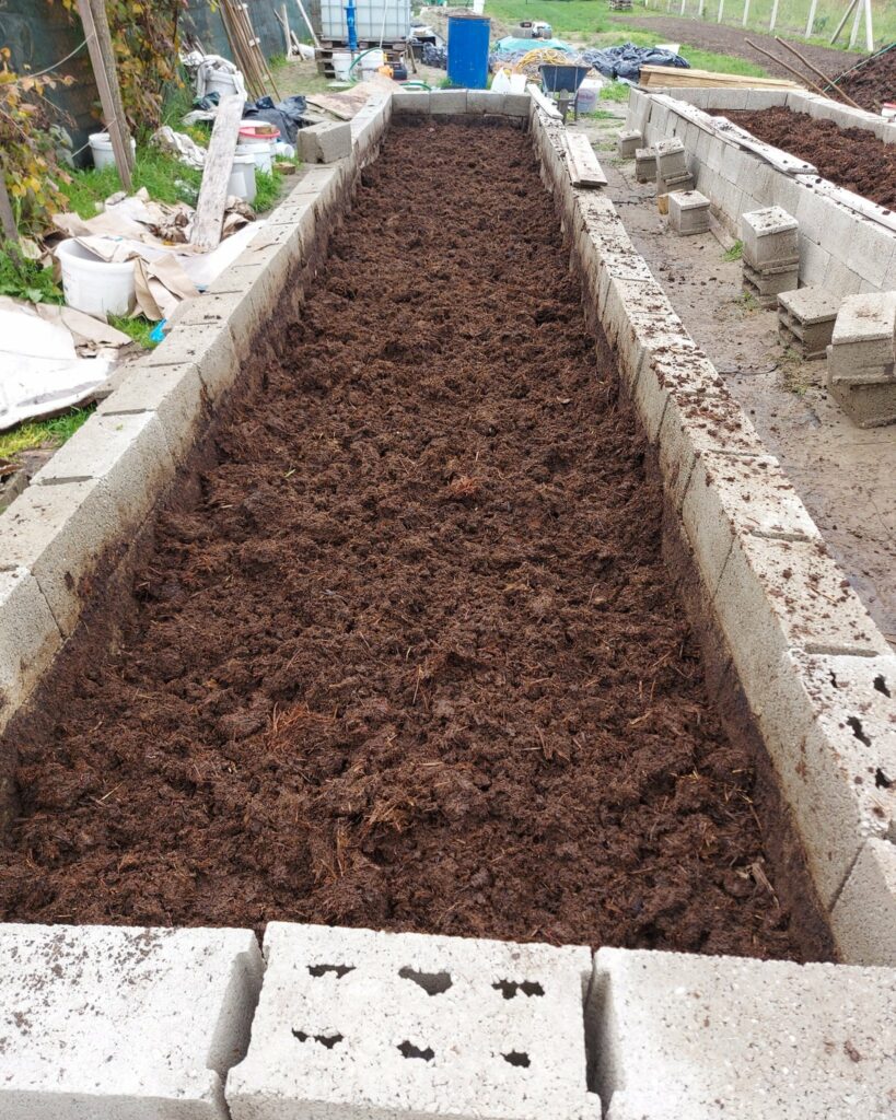 2) Nakon što ste ogradili mesto za bazen do visine od 40 cm (za ograđivanje možete koristiti blokove, daske, fosne, panele, cigle ili šta već imate pri ruci) bazen je spreman za naseljavanje glistama. Visinu možete napraviti tako da dodajete ili skidate ogradu jer ćete na taj način moći da određujete koliko dugo da hranite gliste a i baratanje vilama će vam biti lakše kad je ograda niža. Iz mog iskustva betonski blokovi 19*19*39 cm koji su u ponudi su se najbolje pokazali kao termoizolator i lako je baratati s njima. Cena im je po stovarištima oko 1 euro po komadu, a kad ih jednom kupite trajaće vam praktično večno. Slažete ih naopačke da se ne pune vodom. Negde sam video da ih slažu tako što šupljine pune slamom kao dodatnom termoizolacijom ali to je već previše posla pa ko želi može i to da uradi.
