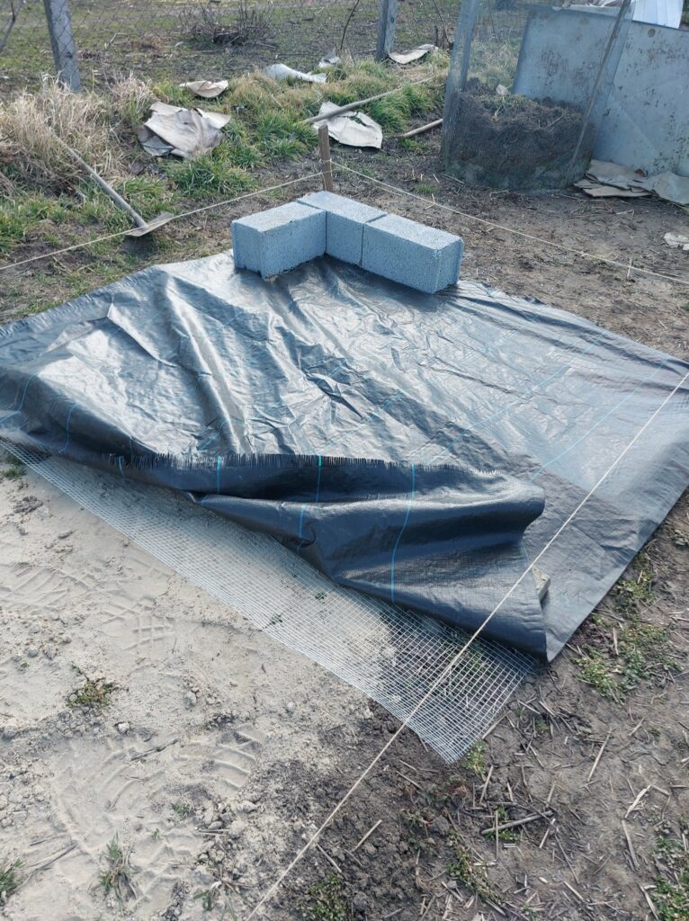 1) Za lokaciju bazena birajte mesto koje je zaklonjeno i gde po mogućnosti ima hladovine. Ako nemate – nema veze. Može i na čistini. Za početak je potrebno je da dole postavite rabic mrežu sa okcima od 9 do 19 mm. Mreža će služiti kao zaštita od krtica. Širina bazena treba biti maksimalno 140 cm zbog lakšeg baratanja sa vilama da vas leđa ne bole ili 100 cm ako imate prilaz samo sa jedne strane. Dužina – po vašoj želji. Preko mreže postavite agrotekstil foliju koja propušta vlagu. Ona će vam služiti kao dodatna zaštita od krtica jer će fizički odvojiti gliste od zemlje pa će ih krtica teže pronaći. Istovremeno će vam pri vađenju glistenjaka biti lakše lopatanje da lopata ne zapinje za žicu. Potrebno je da je bazen na nekom malom nagibu da višak vode može da otiče, a ako nemate nagib napravite ga tako što ćete pre postavljanja žice sredinom bazena nasuti peska ili zemlje tako da voda može da se sliva sa obe strane kad postavite žicu i agrotekstil. Agrotekstil možete kupiti u svim prodavnicama poljoprivredne opreme. Cena je oko 100 dinara/m2. Rabic mrežu imate u prodavnicama alata i stovarištima a cena je oko 250-400 dinara/m2 zavisno od prodavnice i dimenzija. Naravno, može i neka druga žičana mreža koja nema okca veća od 2 cm.